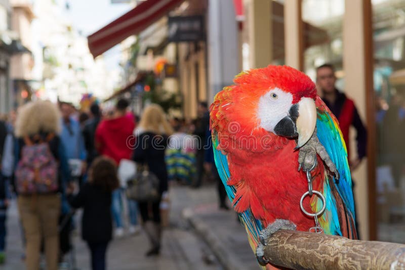 Ara Parrot On A Busy Street Stock Image Image Of Animal Chained 52978025